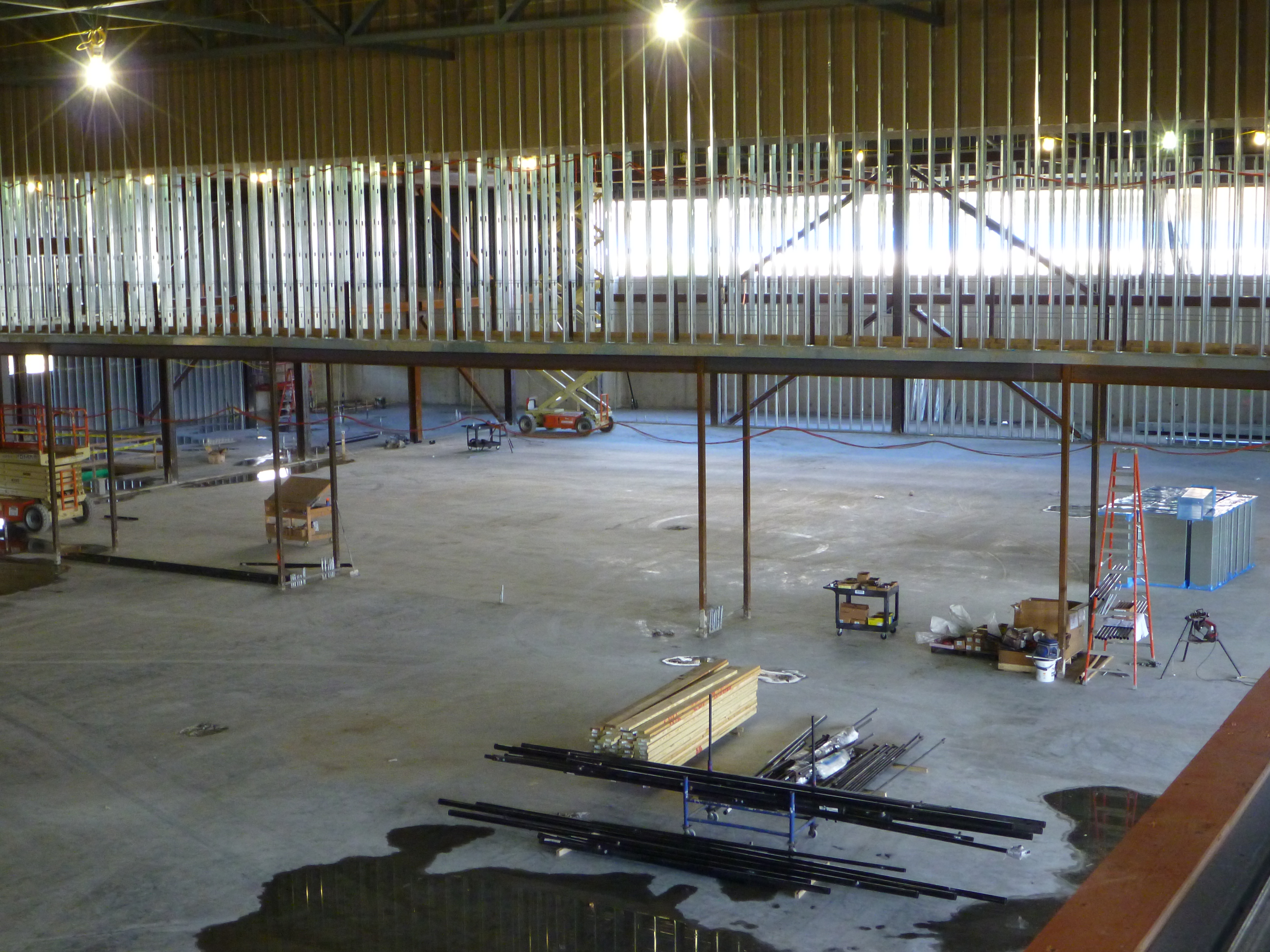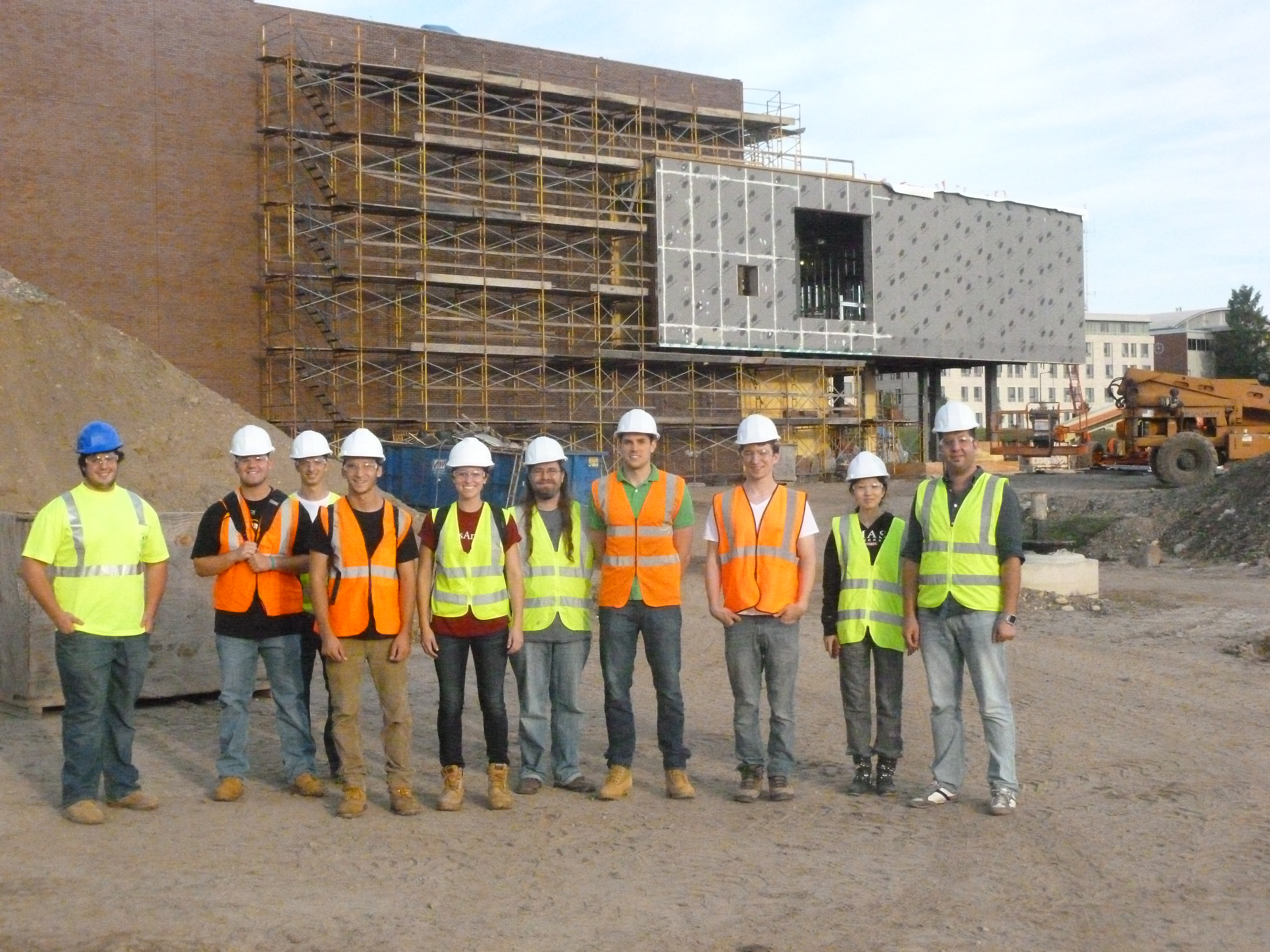 CEE434 Students toured the construction of the Champions Center basketball training facility. This was a large span structure for practice basketball courts and training. The long span roof trusses and slender columns under the walkway are shown.